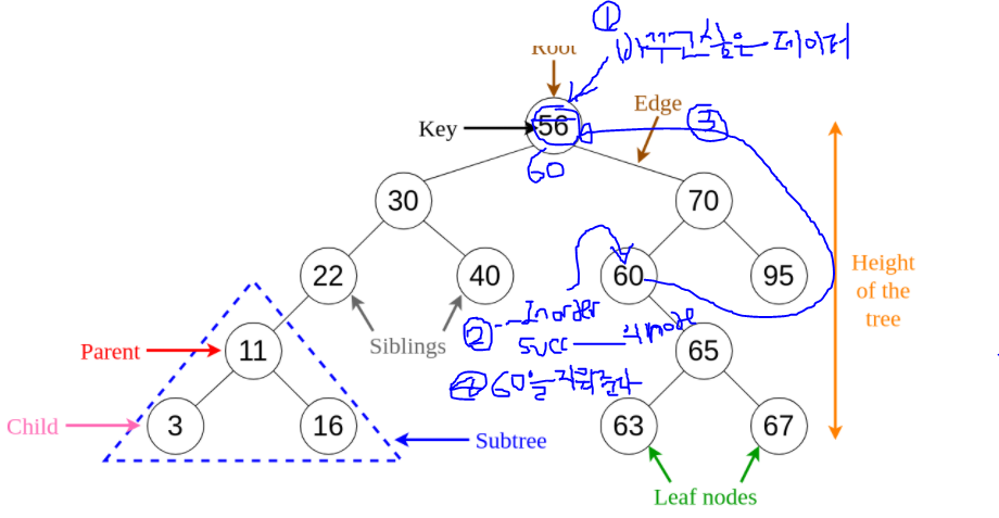 - 무슨 의미냐하면, __inorder_successor(node.right) 을 실행시켜, data 그 다음에 오는 node 의 위치값을 찾고, data 의 값을 __inorder_successor(node.right).data 로 바꿔주는 역활을 한다.