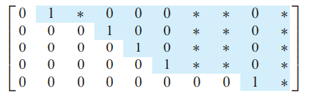 기약행 사다리꼴(row_echolon_form) 이와 같은 꼴을 만족하는 행렬을 행사다리꼴 행렬 및 기약행 사다리꼴 행렬이며,