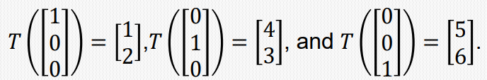 위에서 봤듯이, 선형변환 T를 만족시키면 행렬 A로 표현가능하다 했는데, 이를 예제를 통해서 보자.