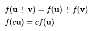 = 즉 쉽게말하면, F=3*X+2*Y 라고 하고, 이 공간의 벡터필드 U = [1,2] 과 V = [3,5] 가 존재한다 했을 때, F[U+V] = F[[1,2]+[3,5]] = F[4,7] = 4*3+2*7 = 26 이 되고, F[U]+F[V] = F[[1,2]]+F[[3,5]] = 3*1+2*2+3*3+2*5 = 26 이 되서 F = 3*X+2*Y 가 다음과 같은 선형변환을 만족시키게 된다. 우리가 어렸을떄, 덧셈 뺄셈 했던거 다 선형변환의 일종이다.